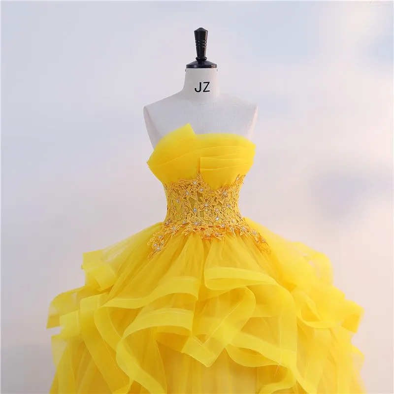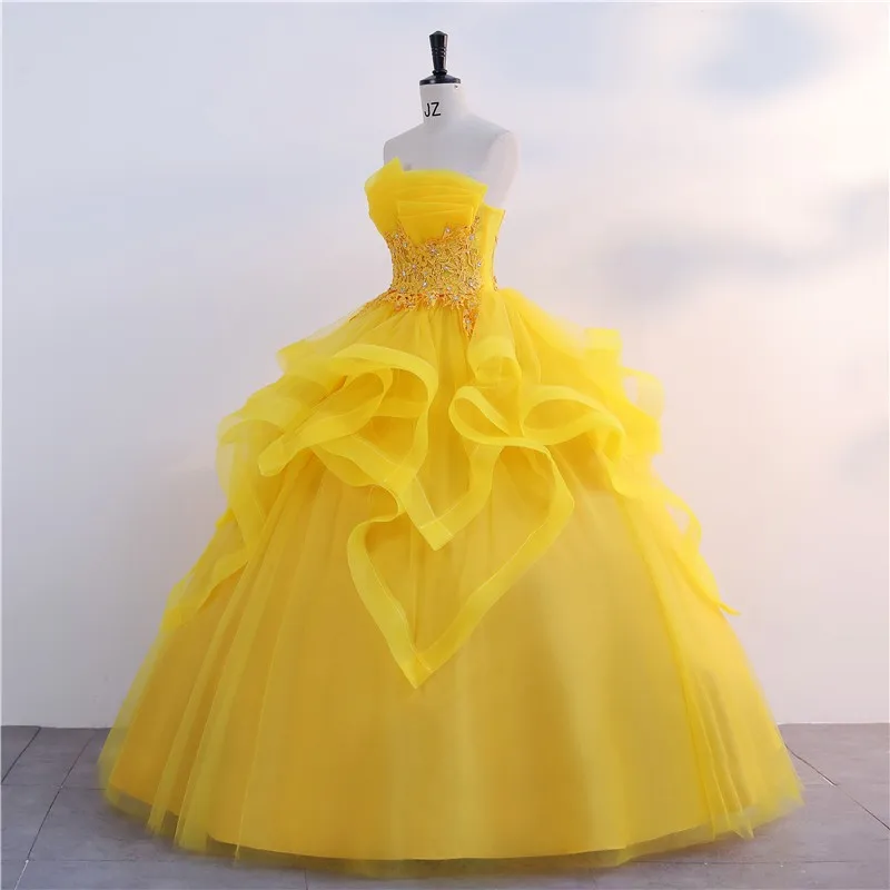 Be the first to review “New Gold Quinceanera Dresses Classic Strapless Ball Gown Real Photo Prom Dress Shinny Formal Gown Luxury Modern Vestidos”