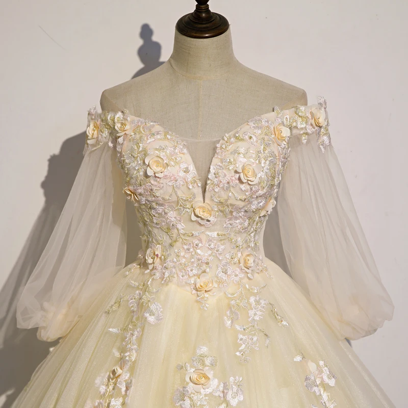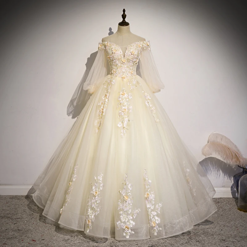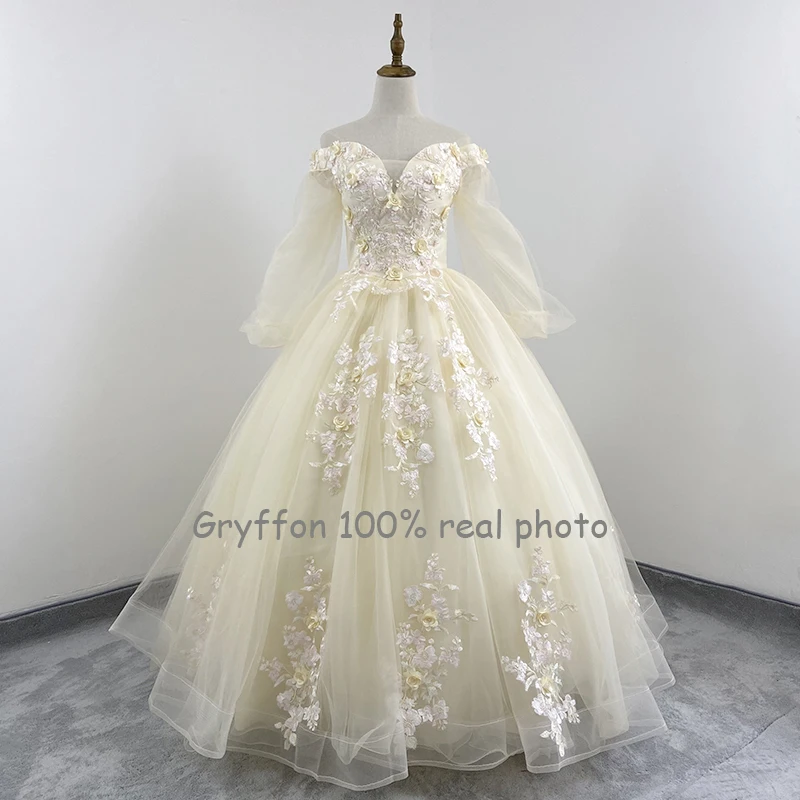 Quinceanera Dress 2021 New Gryffon Party Dress Half Sleeve Off The Shoulder Ball Gown Elegant Floral Print Vestidos Gown